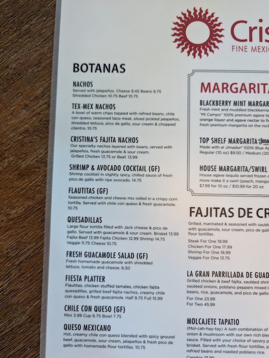 Cristina's Fine Mexican Restaurant Menu